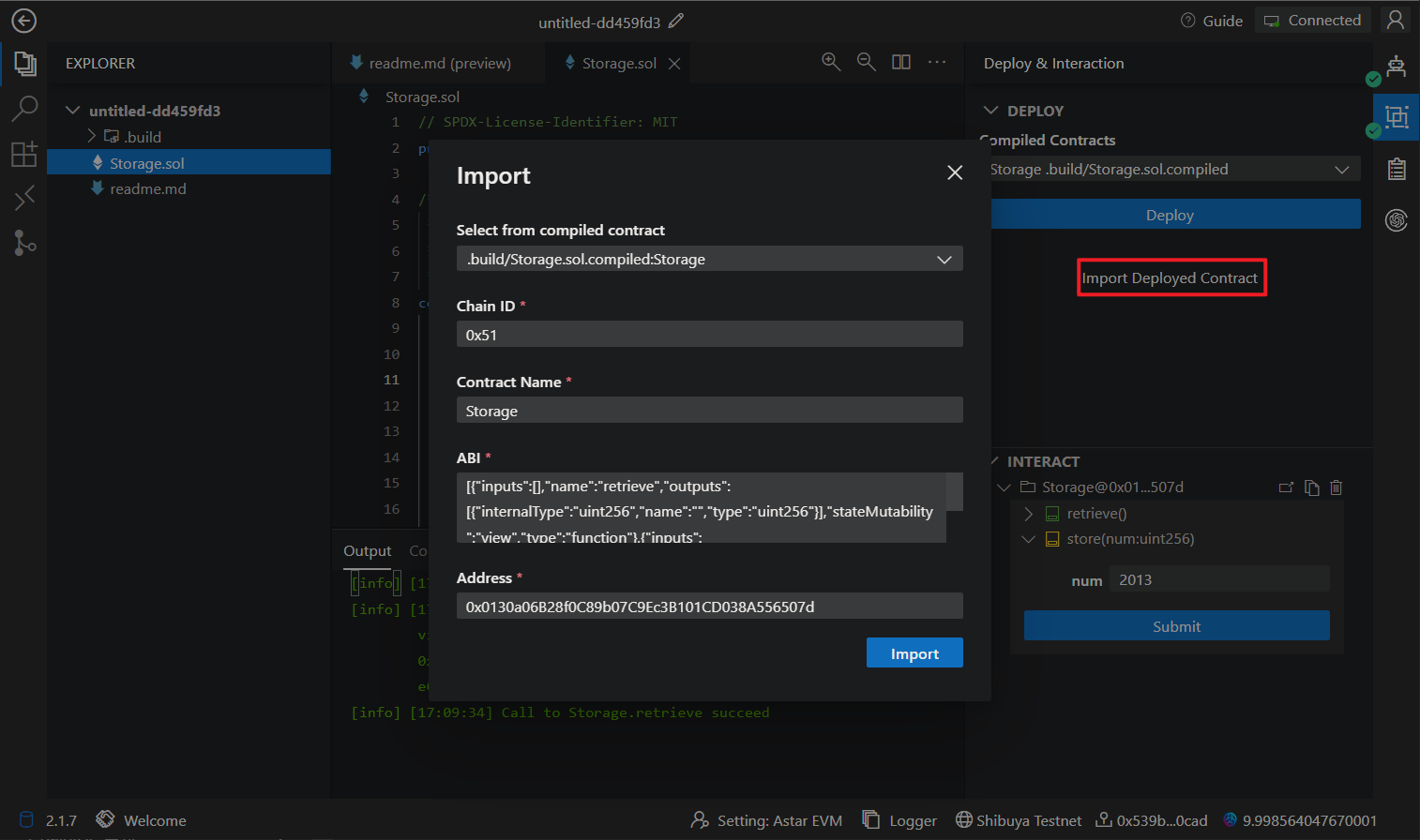In addition, you can click "Import Deployed Contract" to import a contract that has already been deployed for contract interactions.