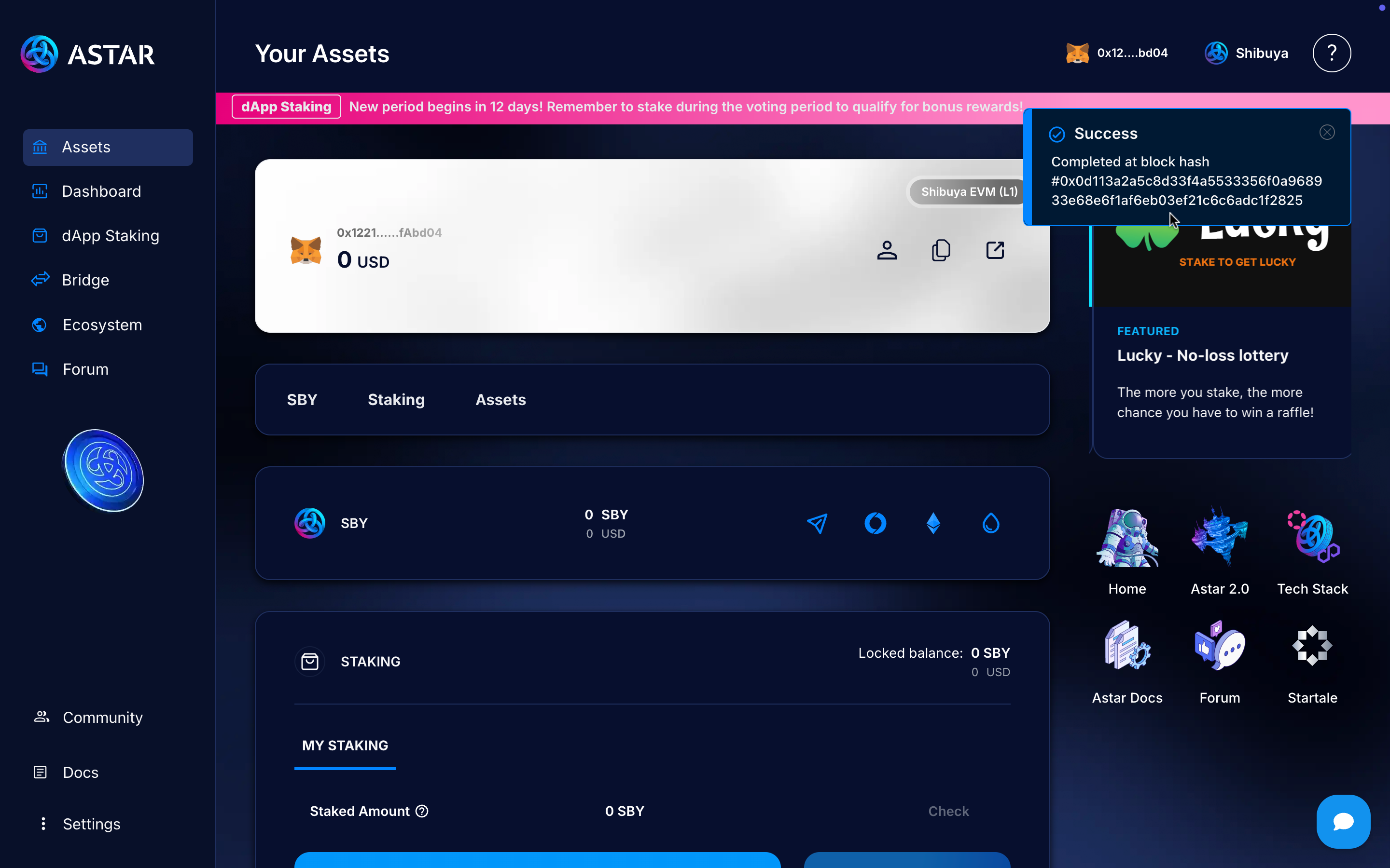 This guide will also work for ASTR and SDN assets on Astar and Shiden networks.