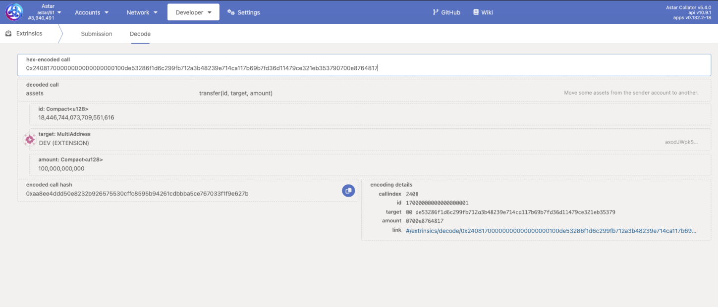 1. If you want to understand the transaction details, copy the Call Data and paste it on the Decode page on the Polkadot.js portal.