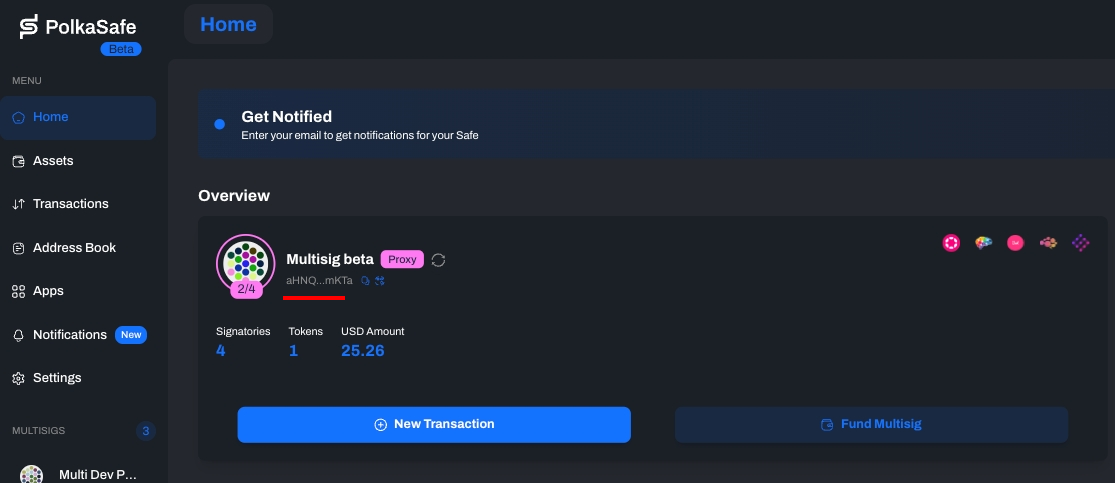 1. Now, you can manage your multisig account on PolkaSafe.