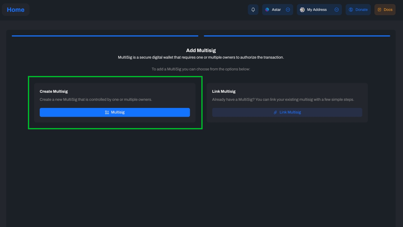 3. Select Create Multisig;