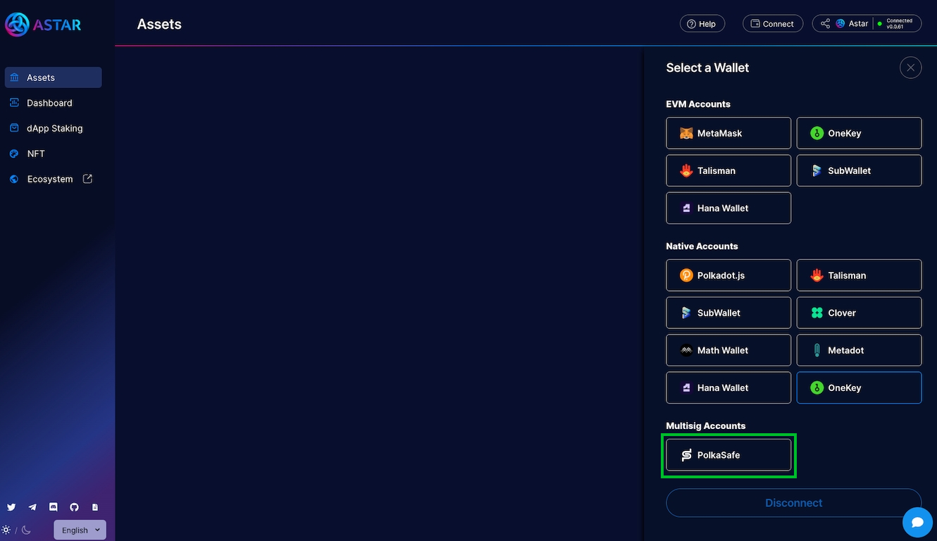 This guide will assist you in utilizing a multisig account on Astar Portal via PolkaSafe.