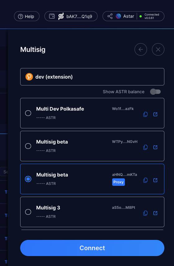 2. Select the multisig account and click Connect;