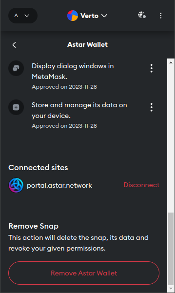 That concludes the Astar Wallet snap Portal install instructions. If you have any questions or believe you have found an error or bug, please open an Issue.