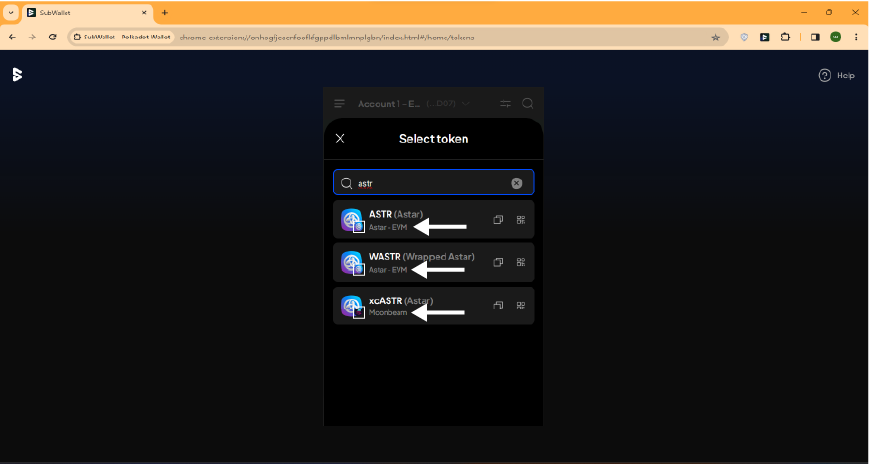 ASTR is allowed to execute cross-chain transfer, so when choosing the token, make sure you are receiving ASTR on the correct chain by checking the network icon under the tokens.