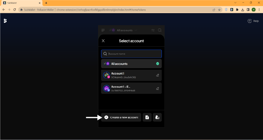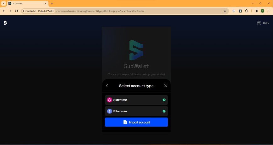 If you want to connect your Ethereum account, choose SubWallet under the Ethereum accounts section.