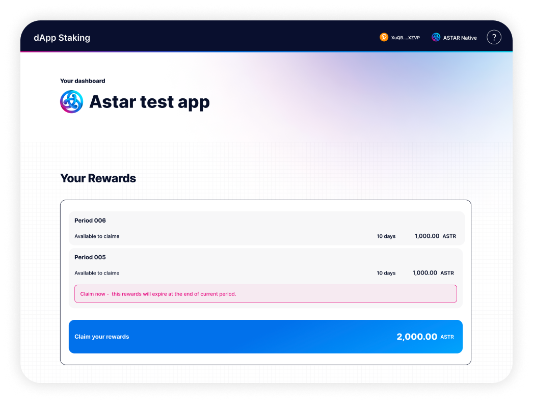 As a dApp owner, a new panel will appear in the Asset page of the Astar portal: Your Project ;